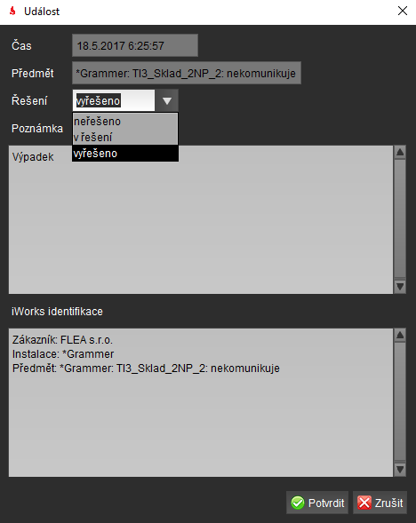 Stav - V jakém stavu se událost nachází (Problém nebo OK)