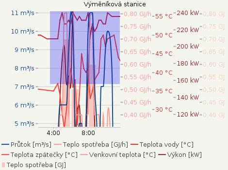 Grafy je možné vidět v intervalu od aktuálního data zpět, nebo od začátku zvoleného období – je zaškrtnuto zarovnat (grafy jsou pak od začátku aktuálního období – začátek dne, týdne, měsíce, roku). Pro zrychlený pohyb o jedno období zpět nebo dopředu slouží piktogramy šipek. Pro výběr období na základě kalendáře slouží komponenta kalendáře v pravé části menu, kde možno zadat přímo datum do textového pole, nebo kliknout na piktogram kalendáře a vybrat datum z kalendáře.